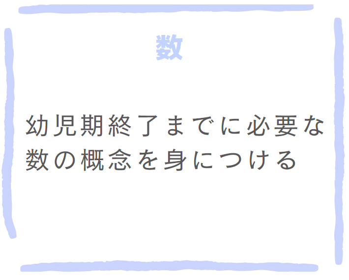 数の概念を身につけるために、おもちゃなどを使い、数を「目で見て」理解する機会を作ります。